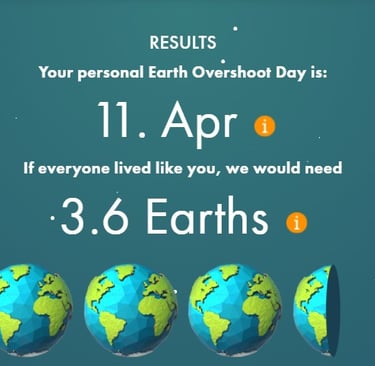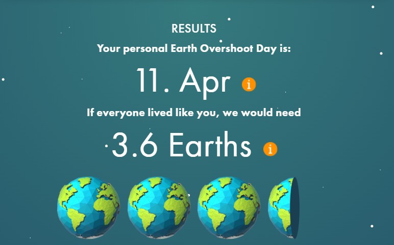 After taking the ecological footprint calculator quiz, If everyone lived like me, we would need 3.6 Earths to sustain human life. I found this number shocking. I was expecting that number to be so much less than it was. I think I live fairly sustainably. I drive an electric vehicle, I grow a lot of produce, we power our house with solar power and practice energy conservation measures with the electricity used in our household. Even with following a lot of the standards for sustainability, we have still more than exceeded the earths needed to support human life and that is an unfortunate sign. I strive to reach sustainability goals and practices and if even that is so far over the carrying capacity of the earth that is very concerning for the future of the planet and ecosystem. Sustainability goals should strive to be sustainable within one Earth but our standardized goals would still put us so far above that one Earth amount and that is a very disappointing and saddening fact to have learned.