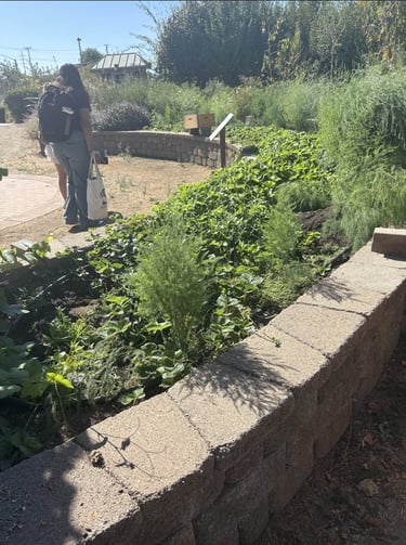 During the sustainability tour, we learned about and explored Sac State's sustainable garden. We saw different produce being grown, the tiny house project, bee boxes, the composting system, and solar panels. We discussed renewable energy and resources and how composting and this garden supported the sustainability movement here on campus.