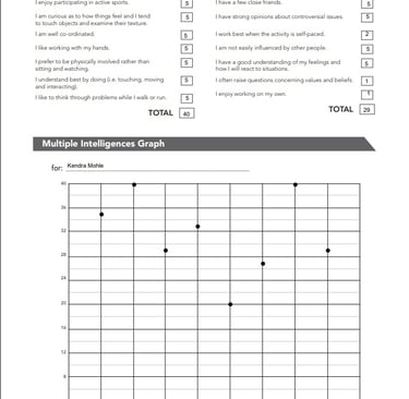 I took a survey to learn about what kinds of intelligence I am strongest in and what my weaknesses in intelligence are to best learn and grow and use the information gathered here to help me find habits and methods to enhance my learning.