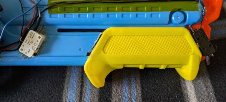 The last sensor in this sequence is the one that detects when the gun fires. This sensor is located on the trigger and is continuously hit by the trigger unless the trigger is pulled. When the trigger releases the switch, it will signal to the raspberry pi that the gun has been fired and return to the state waiting for the next locked signal.