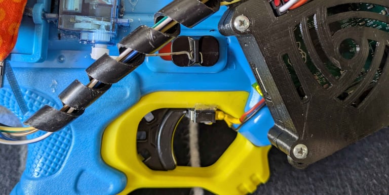 There is a servo motor on the right side of the gun that moves a wire a small distance to lock and unlock the trigger lock on the gun depending on the input it receives from the RFID tag.