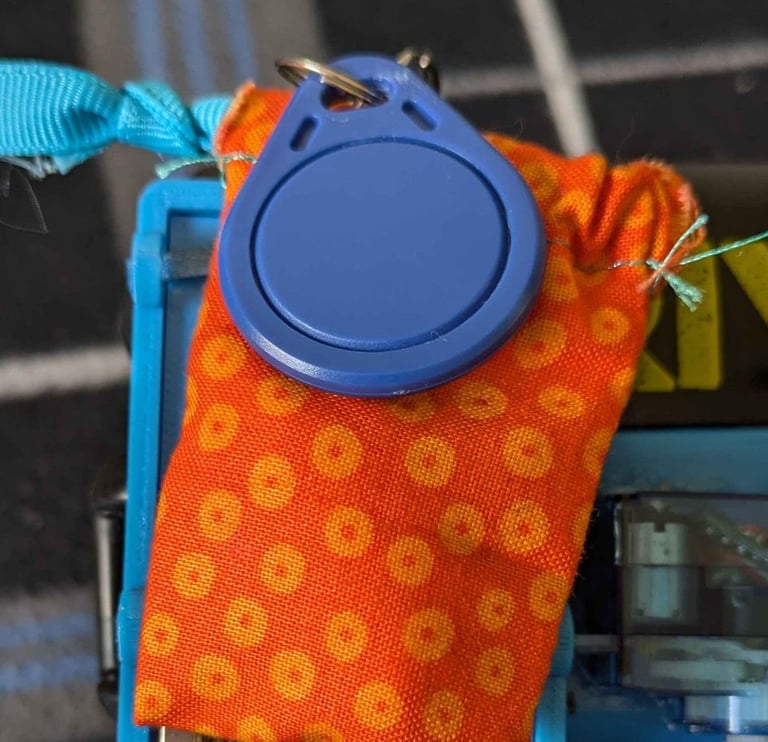 There is an RFID tag and reader on the side of the gun as well. This tag has an encoded password on it and when it is in contact with the RFID tag, it reads the password from the key using SPI and sends a signal to the Raspberry Pi on the gun to send a command to the Servo motor to unlock the trigger lock as long as the key is in contact.
