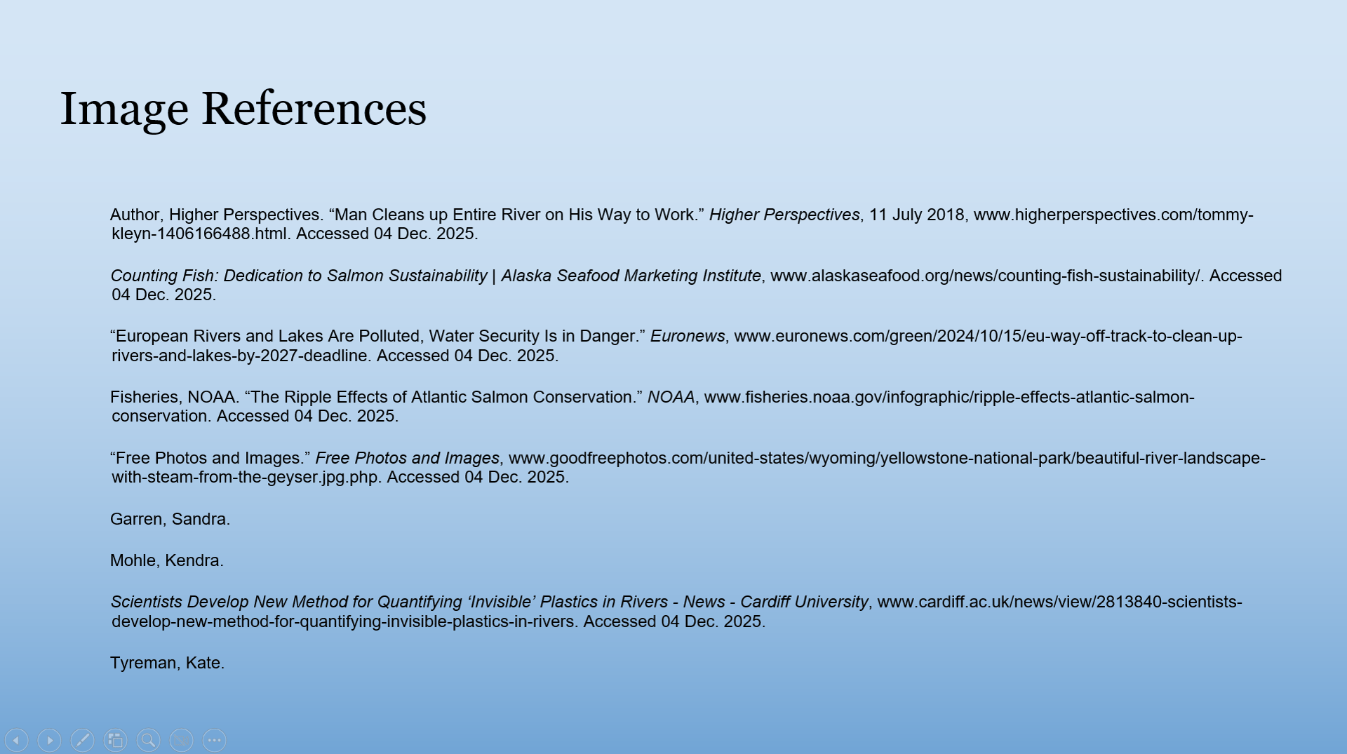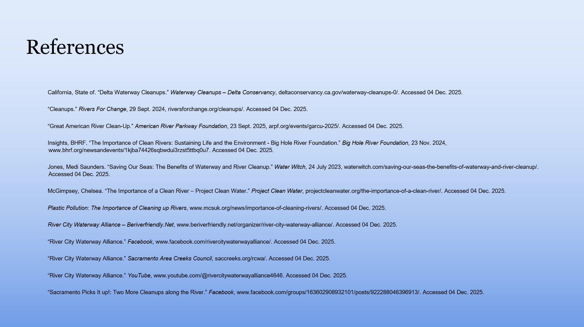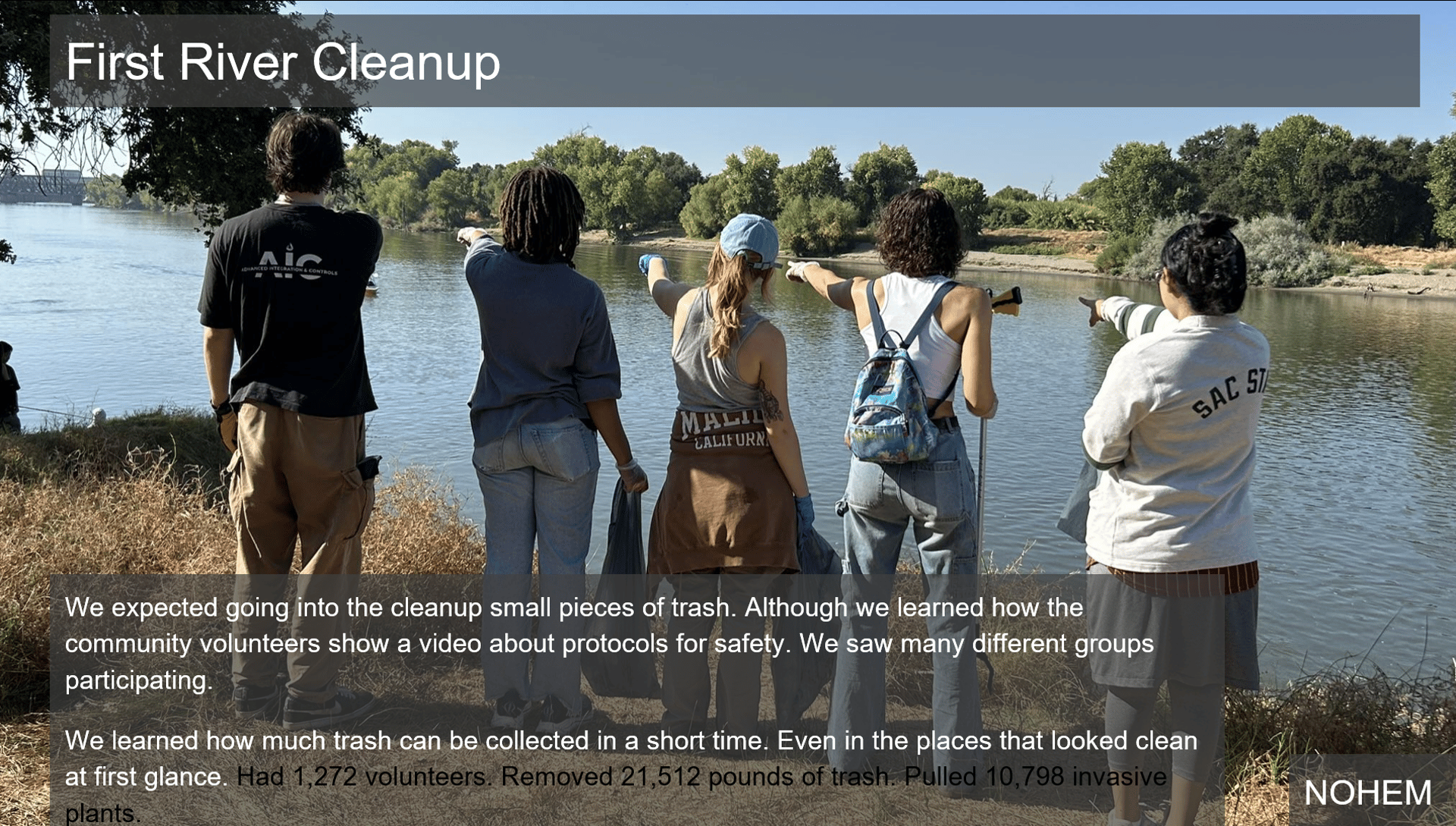 The two presentations that stood out to me the most were the food waste ones and the environmental justice ones. The food waste one stood out to me because this is my fourth year on this campus and I have not heard about many of their resources. I knew about the ASI food pantry, but I had never even heard about the basic needs resource center or that some parts of campus weren’t held to sustainability standards. This group explained about how food was handled sustainably on campus and interviewed people and toured the food distribution locations on campus and how Sac State pursues sustainability with food. I was amazed by how little information is spread about all of these resources available and how the starts system is kind of looked over and not very publicized on how our standards compare to other universities. In the environmental justice presentation, they interviewed people of all backgrounds around campus on living conditions and how extreme weather affects them based on their situations and finances. The video they played about these interviews was extremely impactful and really showed how different people escaped the heat ranging from air conditioning to find a river or how different people survived or escaped floods. It really showed the lack of support there is for people who cannot afford comfort in extreme weather conditions, which is something I really feel we need to do better at. Everyone should have their basic needs of good shelter and food met.